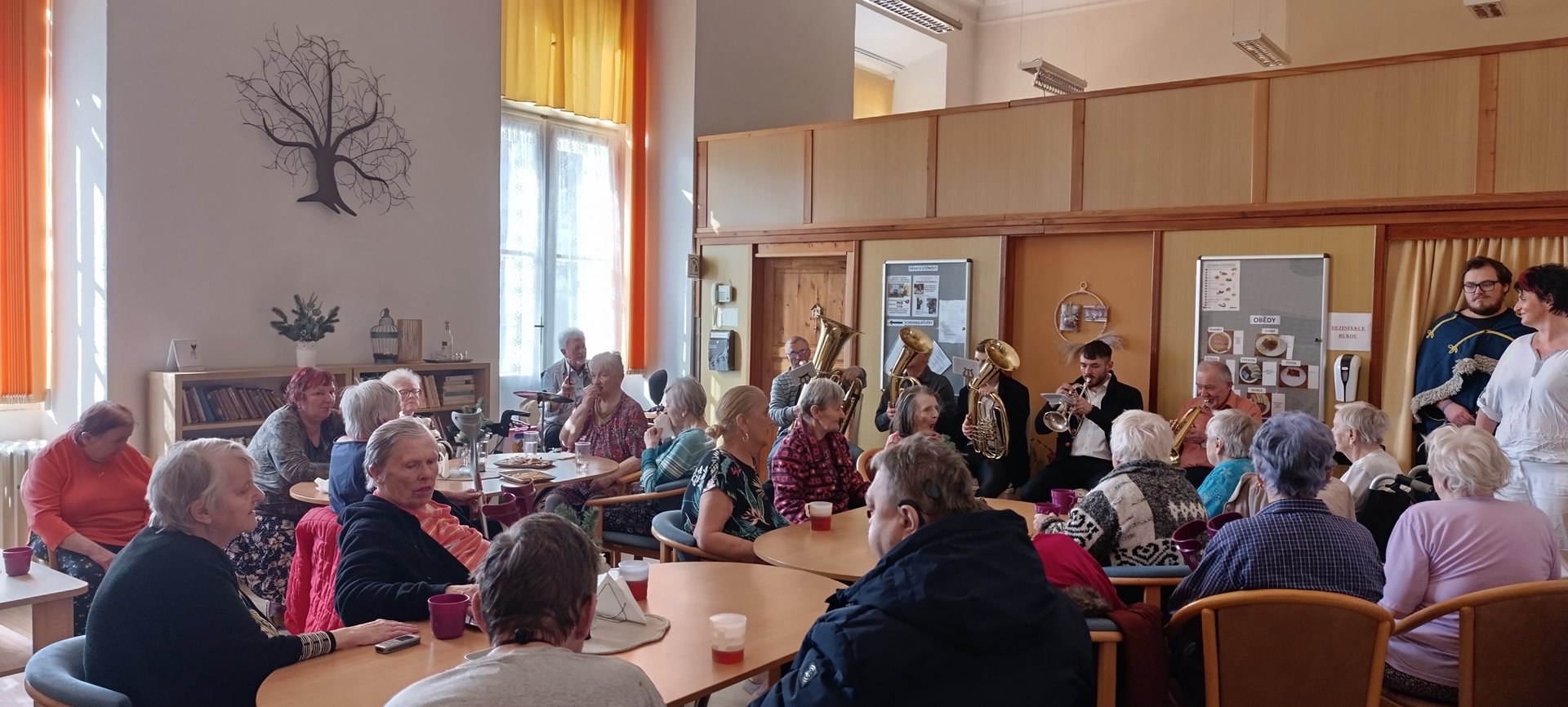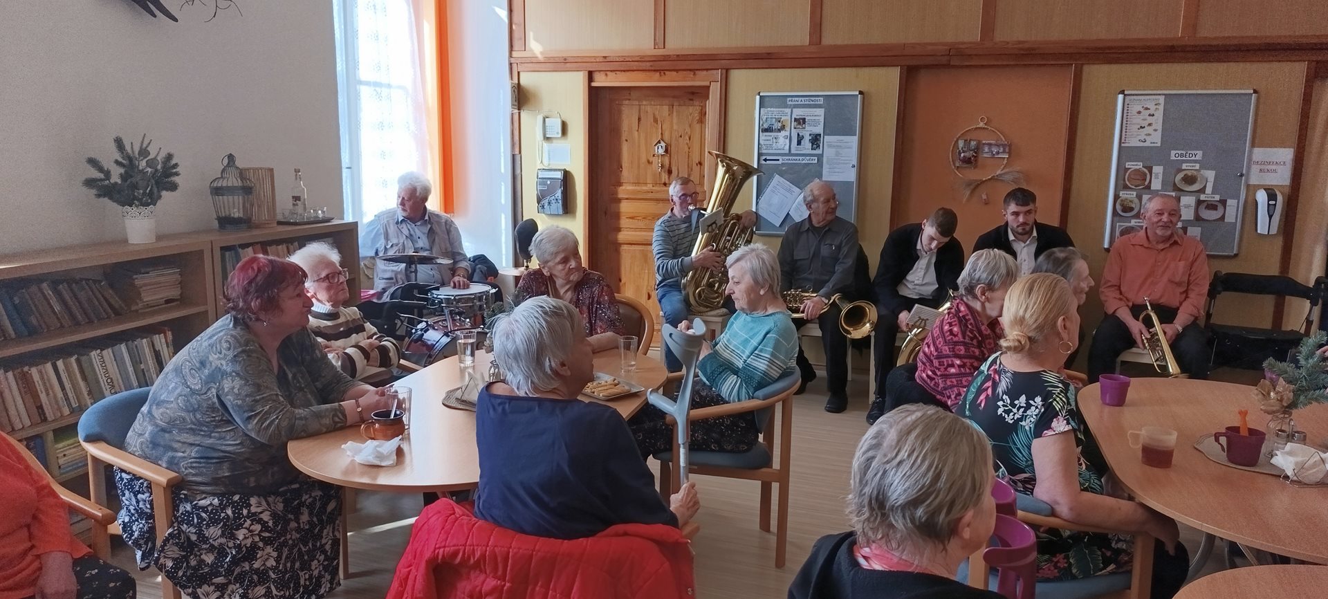 Průvod masek v doprovodu živé hudby navštívil klienty na pokojích. Následně proběhlo posezení ve společenské místnosti při sklence dobrého vínka a sladkého občerstvení. K poslechu a tanci zahrála Malá dechovka.